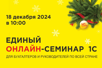 Декабрьский Единый семинар 1С для бухгалтеров и руководителей пройдет онлайн 18 декабря 2024 года в 10:00 по местному времени.